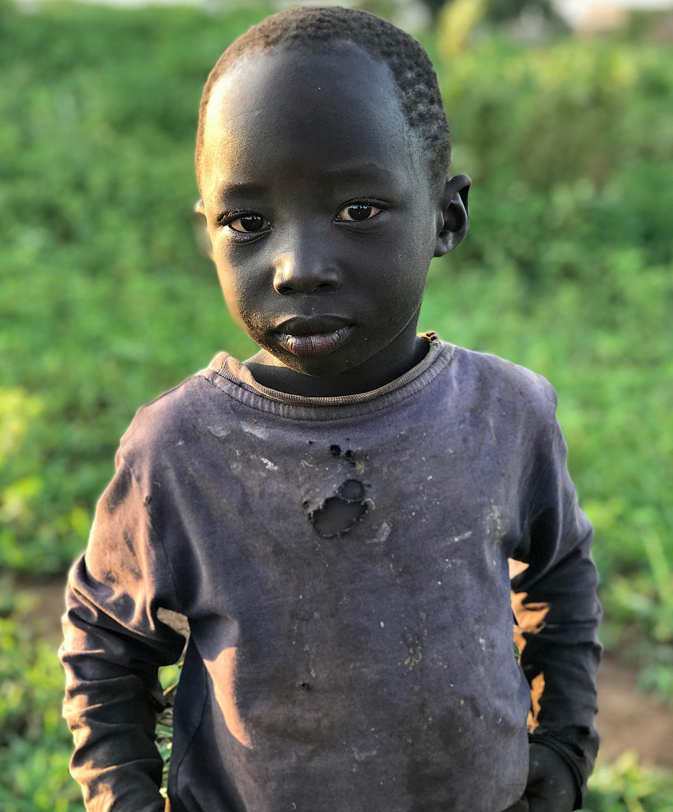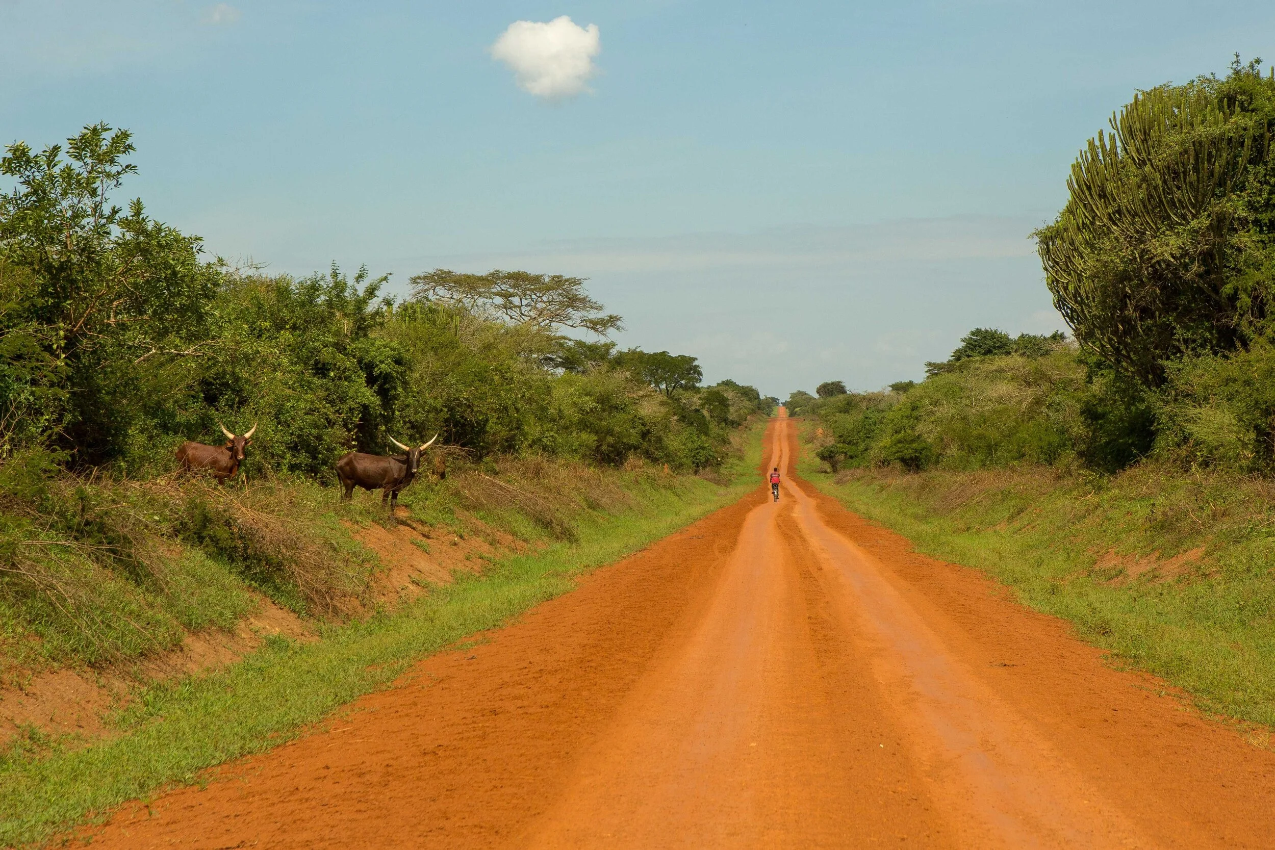 From there, you travel five hours north, by van, through the rich land of Uganda, across the glorious Nile by ferry, along dusty red-dirt roads. Ahead of you, flat marshy land with low, wide trees. Above you, a sky filled with lush, heavy clouds.