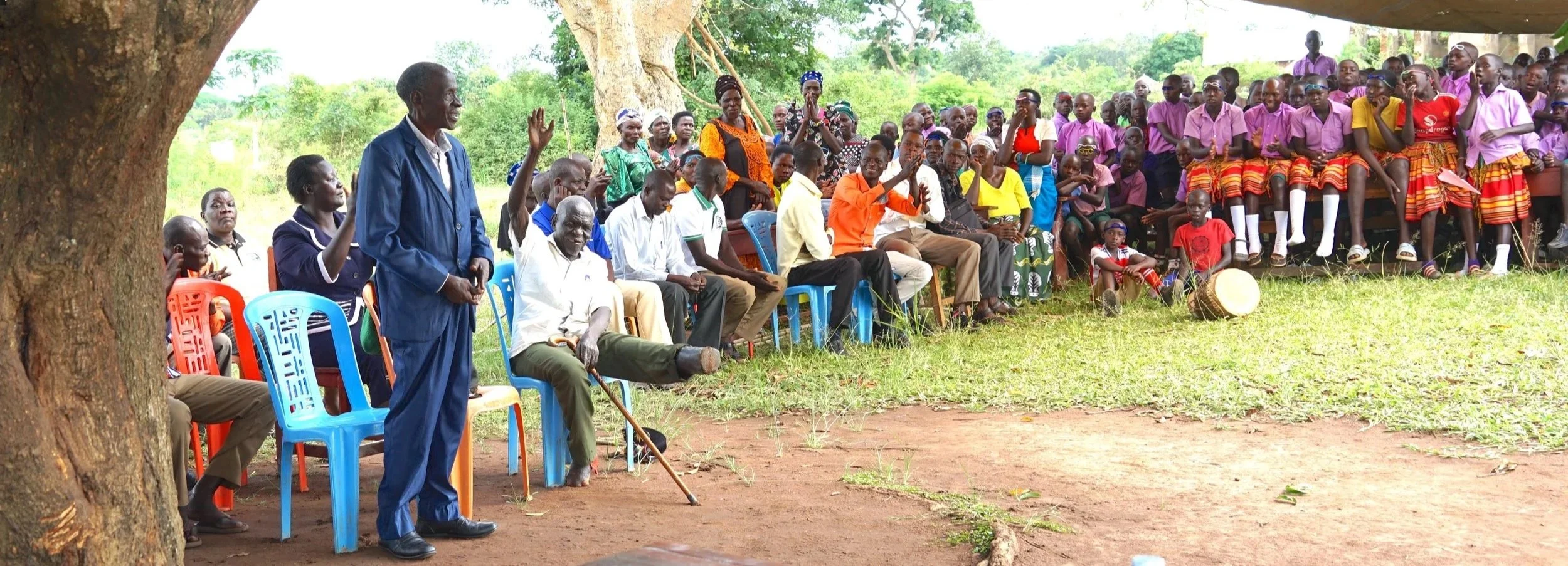 Parents from Abongokongo and Barkworo primary schools building desks. Many came dressed in their finest clothes.